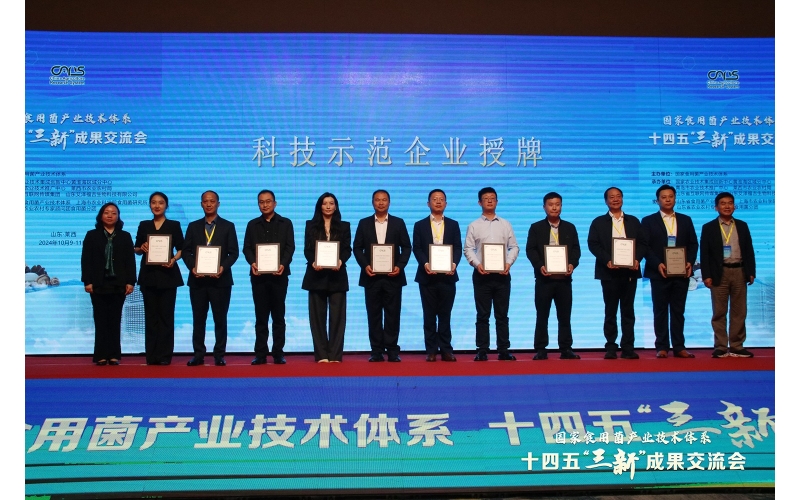 2024年10月10日,國(guó)家食用菌產(chǎn)業(yè)技術(shù)體系十四五“三新”成果交流會(huì)在山東省青島市萊西市舉行,國(guó)內(nèi)食用菌行業(yè)的領(lǐng)軍人物、專家學(xué)者、政府代表以及企業(yè)界代表共300余人參會(huì),共同探討食用菌產(chǎn)業(yè)新未來(lái)。開幕式上,江蘇安惠生物科技有限公司等30家企業(yè)獲得“國(guó)家食用菌產(chǎn)業(yè)技術(shù)體系示范企業(yè)”榮譽(yù)稱號(hào)。