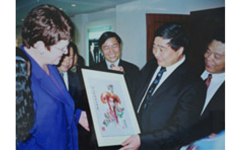 2004年9月,新西蘭前總理凱樂.希普莉女士來公司參觀,陳惠董事長向希普莉女士贈送禮品。