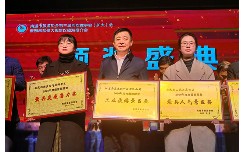 2021年3月2日,南通市旅游協(xié)會(huì)三屆四次會(huì)員大會(huì)在長(zhǎng)壽之鄉(xiāng)——如皋召開。安惠生物科技園獲評(píng)2020年度南通旅游業(yè)“工業(yè)旅游景區(qū)獎(jiǎng)”,安惠公司董事長(zhǎng)陳惠榮獲2020年度南通旅游業(yè)“突出貢獻(xiàn)獎(jiǎng)”,并當(dāng)選南通市旅游協(xié)會(huì)副會(huì)長(zhǎng)。