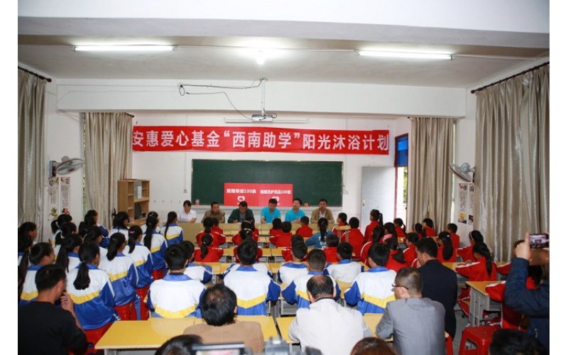 9月11日,安惠江海志愿者第三次來到貴州省獨山縣麻尾鎮麻尾中心學校,而麻尾的學生們也迎來了他們盼望已久的重逢。麻尾小學堯棒分校和麻尾四中是此次安惠愛心基金“西南助學 陽光沐浴”計劃的實施點。9月13日上午,捐贈儀式分別在這兩個學校的操場進行,孩子們用熱烈的掌聲和精彩的歌舞歡迎遠道而來的客人。此次安惠愛心基金為孩子們安裝了空氣能熱水器,提供了200套洗護用品,為60名品學兼優的中小學生頒發了助學金,給他們提供了最實用的幫助。安惠公司邀請了東方中學的兩位優秀老師來到麻尾授課,和師生們一起探索教育發展新路。
