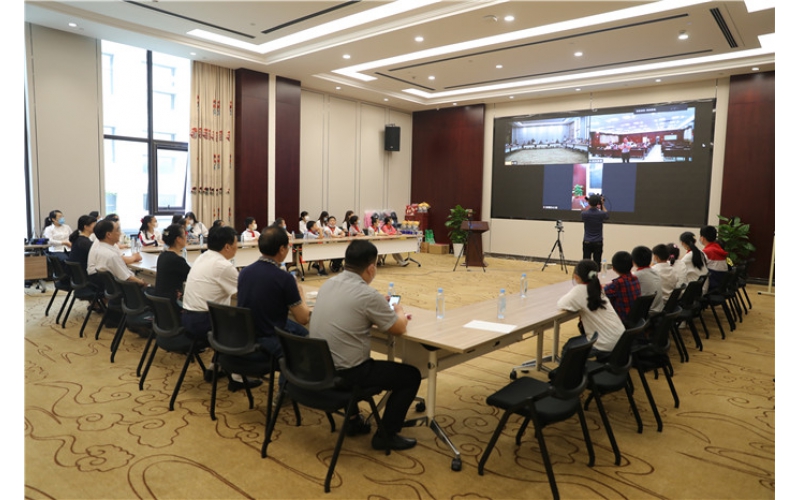 2020年9月8日,技術跨越距離 “云”端共話成長——“西南助學 陽光沐浴”計劃校企線上交流會舉行。安惠公司副董事長陸漢萍,黨建工作指導員、助企“第一書記”沈樹新,副總經理湯利兵,聯合工會、團委的安惠江海志愿者代表,以及南通開發區竹行小學的老師代表齊聚安惠會議中心,通過視頻會議的形式,與貴州省獨山縣麻尾鎮的師生代表座談交流。