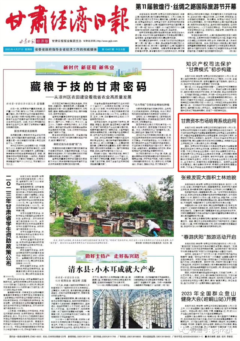 媒體關注 | 甘肅資本市場培育系統正式啟用