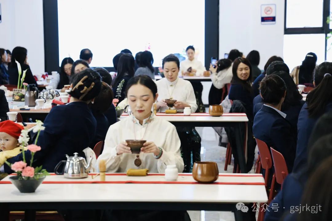 集團組織蘭內100余名女職工齊聚集團2樓大廳,在國家級茶藝師的指導下開啟茶文化之旅?;顒蝇F場,茶藝師以《茶經》典故為引,鋪展開一片東方樹葉穿越千年的文化長卷。從唐宋煎茶、明清瀹飲的流變,到綠茶清逸、紅茶醇厚的風骨;從茶馬古道的歷史回響,到“和敬清寂”的禪意哲思,女職工們循著茶香觸摸中華文明的脈絡。隨著古琴聲起,茶藝師手執茶筅,在茶盞中勻速擊拂,點茶的雪沫漸浮盞面;轉而捧起三才蓋碗,以太極回旋手法傾注茶湯,看銀針白毫在杯中云卷云舒。通過沉浸式體驗教學,大家認真練習“溫具、置茶、沖泡、分茶”等泡茶順序和手法,絲毫不敢懈怠,100余套青瓷茶具泠泠作響,女職工們或凝神觀摩茶湯色澤,或結對切磋注水力度,氤氳茶煙中流淌著對傳統文化藝術的敬仰。