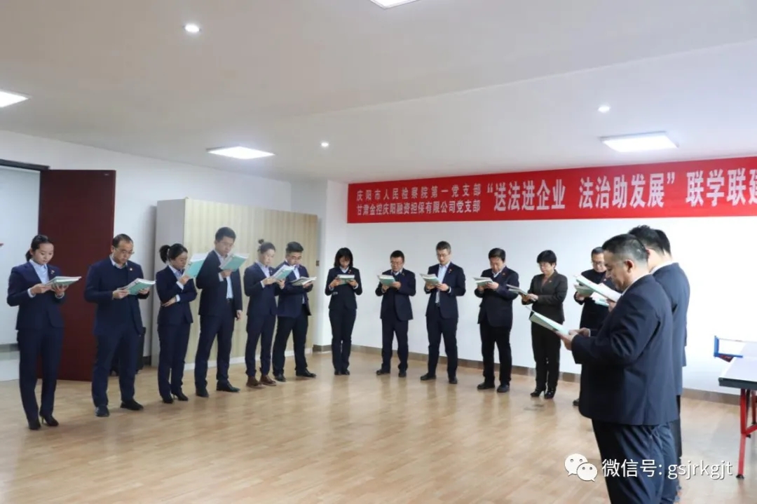 近日,慶陽市人民檢察院聯合甘肅金控慶陽擔保公司開展聯學聯建活動,創新黨建引領新形式,豐富黨建工作新內容,增強企業依法經營新理念,全面推動法治管理建設縱深發展。