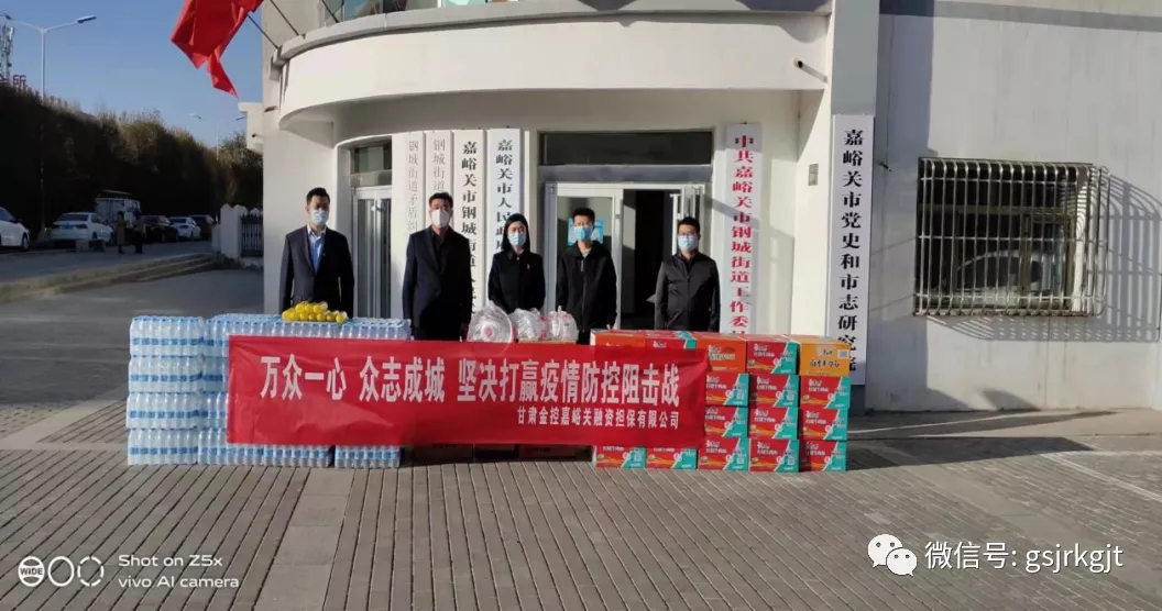 嘉峪關(guān)擔保向嘉峪關(guān)市鋼城街道防疫一線贈送物資