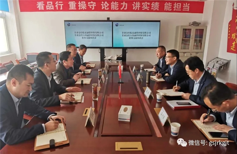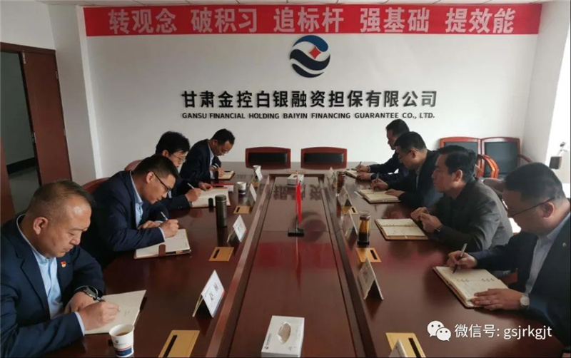 4月15日,金控臨夏擔保董事長郭文俊一行到金控白銀擔保開展業務交流,金控白銀擔保董事長羅繼林主持召開座談會。