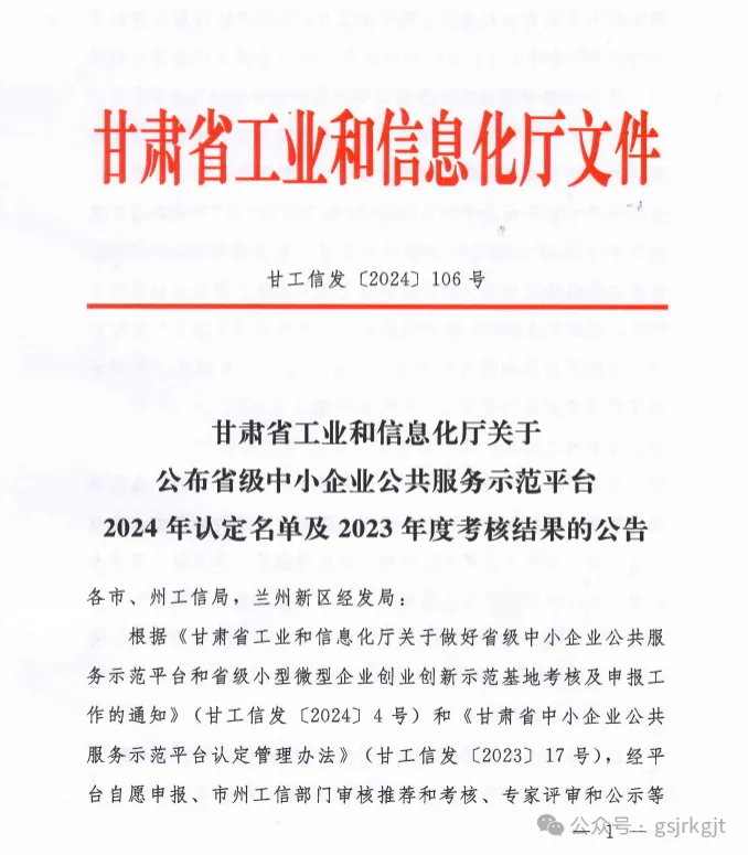 近日,甘肅省工信廳公布了《關于公布省級中小企業公共服務示范平臺2024年認定名單及2023年度考核結果的公告》,甘肅股權交易中心在128家省級中小企業公共服務示范平臺考核中榮獲“優秀”等次。