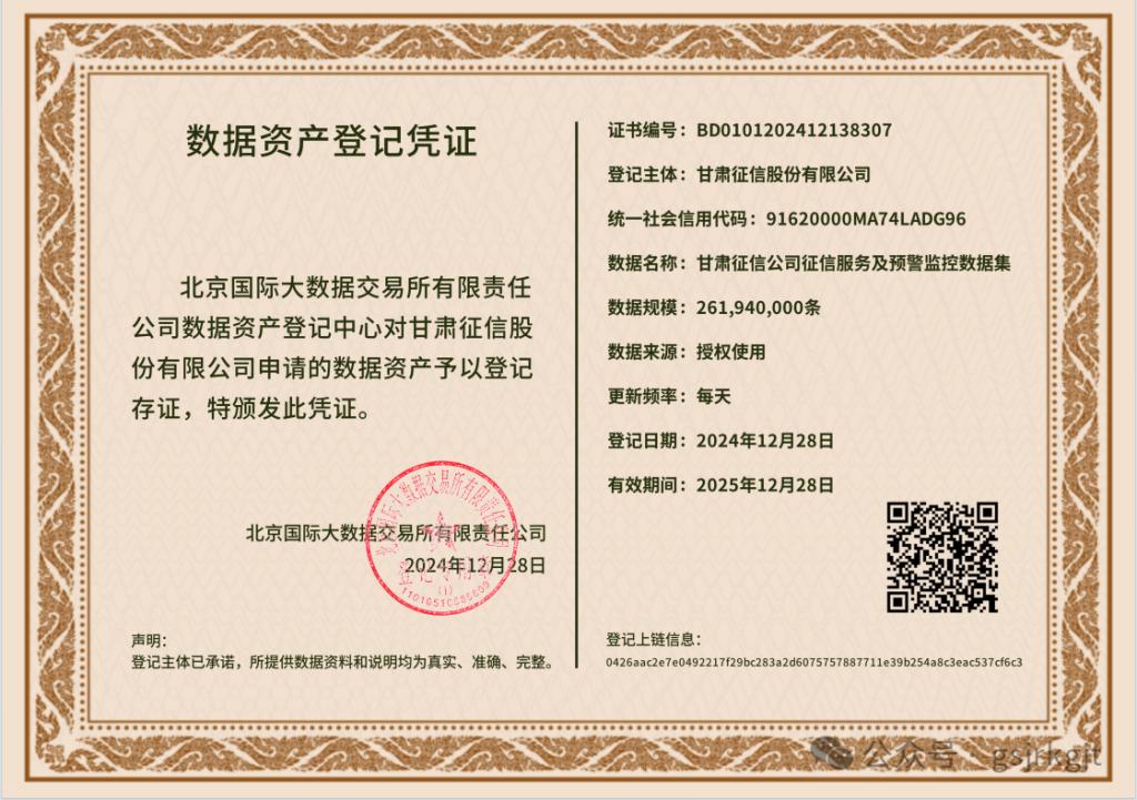 企業動態 | 盤活數據資產、激發數據價值——甘肅征信完成數據資產入表工作